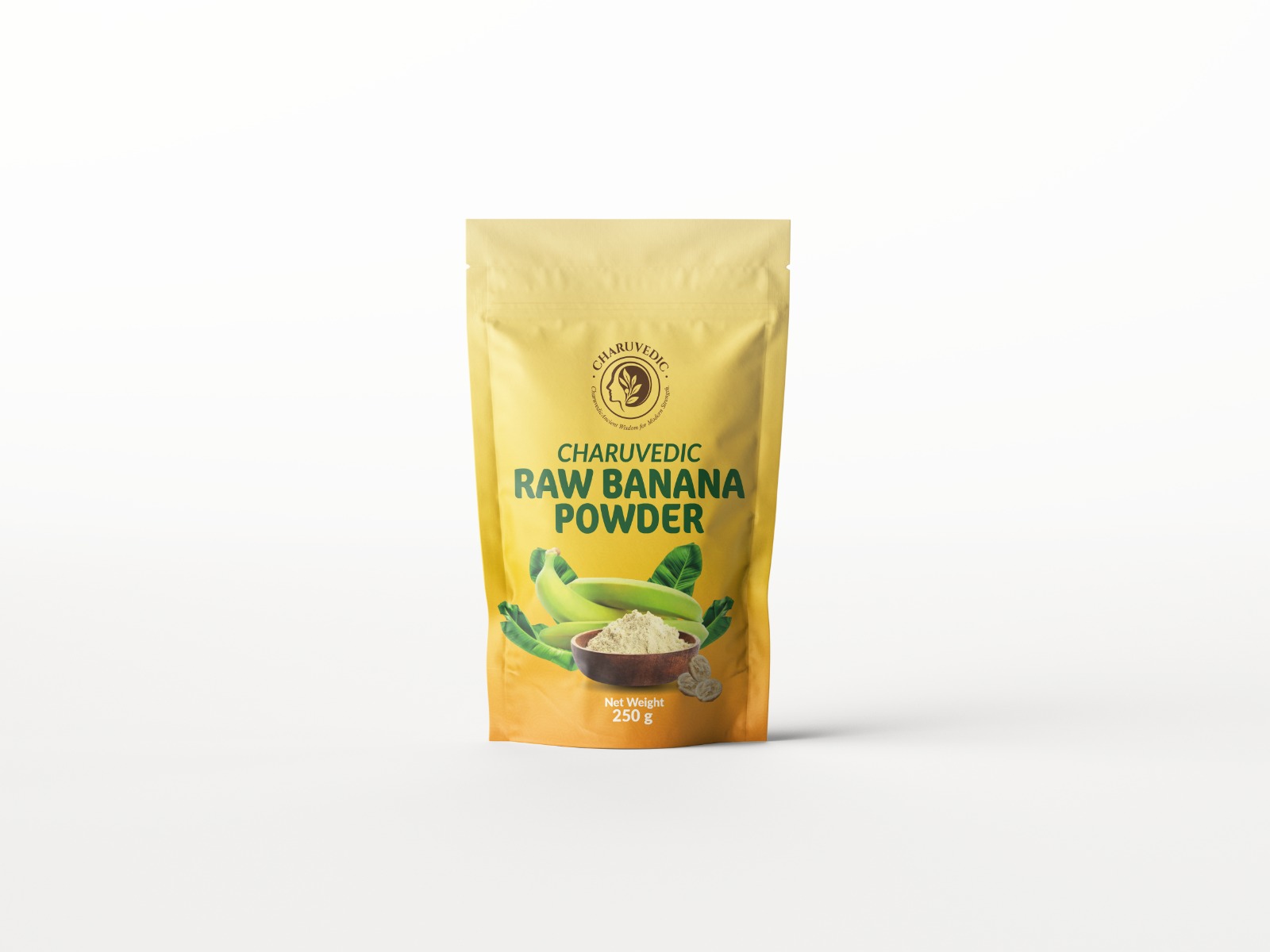 Charuvedic Raw Banana Powder is a fiber-rich, plant-based powder made from raw green bananas. It supports healthy digestion, gut balance, and daily digestive comfort while fitting easily into modern wellness routines.
